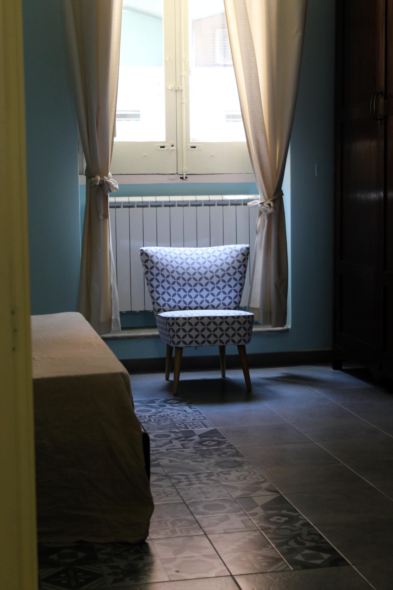 Appartamento ideale per due o quattro persone. Si compone di una camera matrimoniale ampia e luminosa, di un bagno privato e di una zona living con cucina open space, completamente attrezzata con tavolo da pranzo, fornelli, frigorifero, congelatore, ,pentole e utensili. È presente un divano letto adatto a ospitare due adulti. All’arrivo saranno fornite lenzuola e asciugamani debitamente igienizzati e prodotti da bagno.