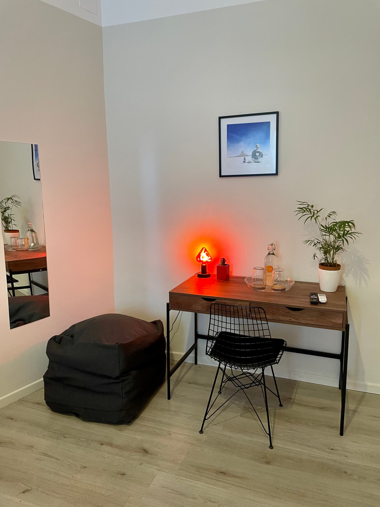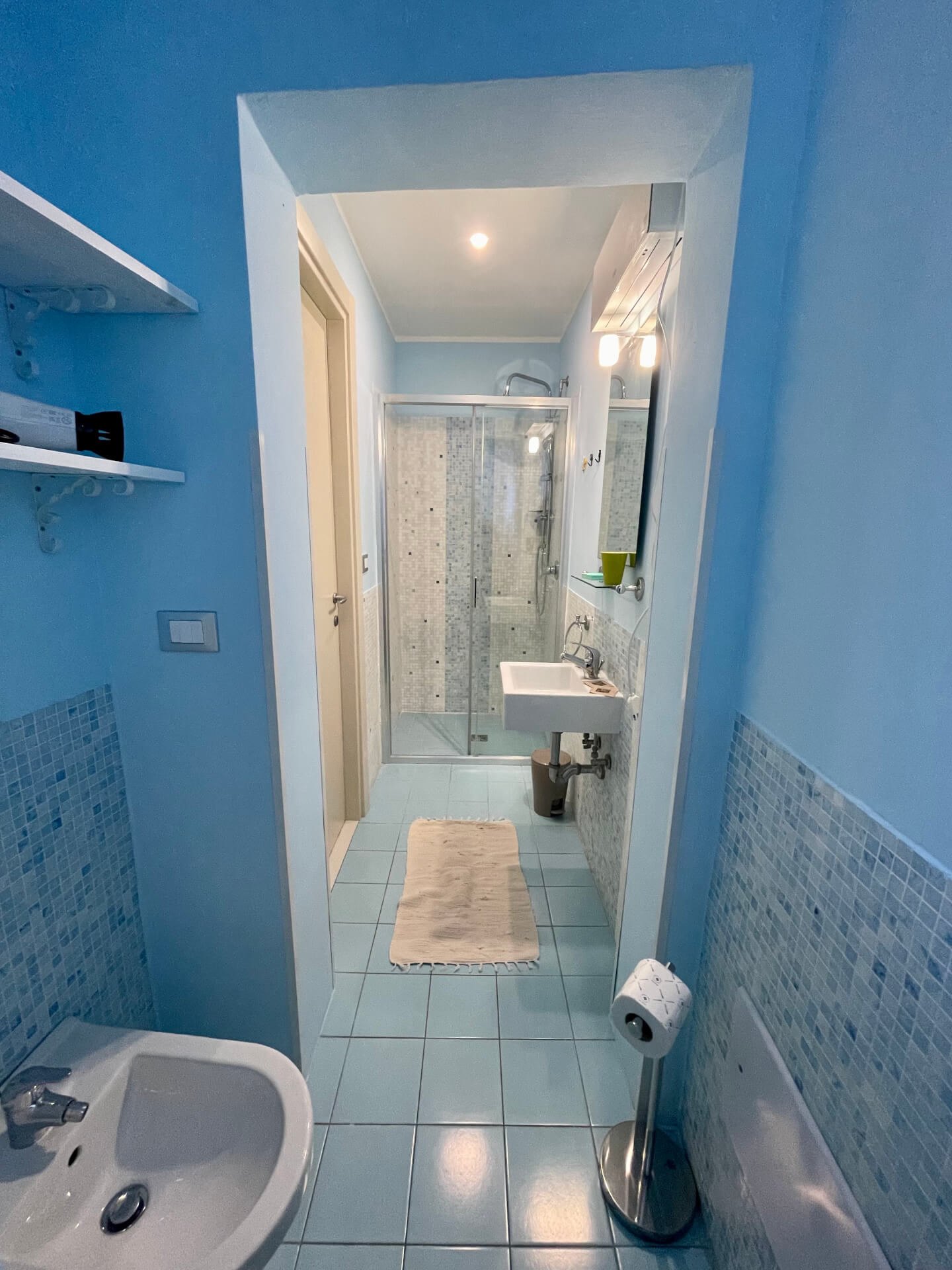 Un breve corridoio collega la camera privata alla cucina e alle altre aree comuni.