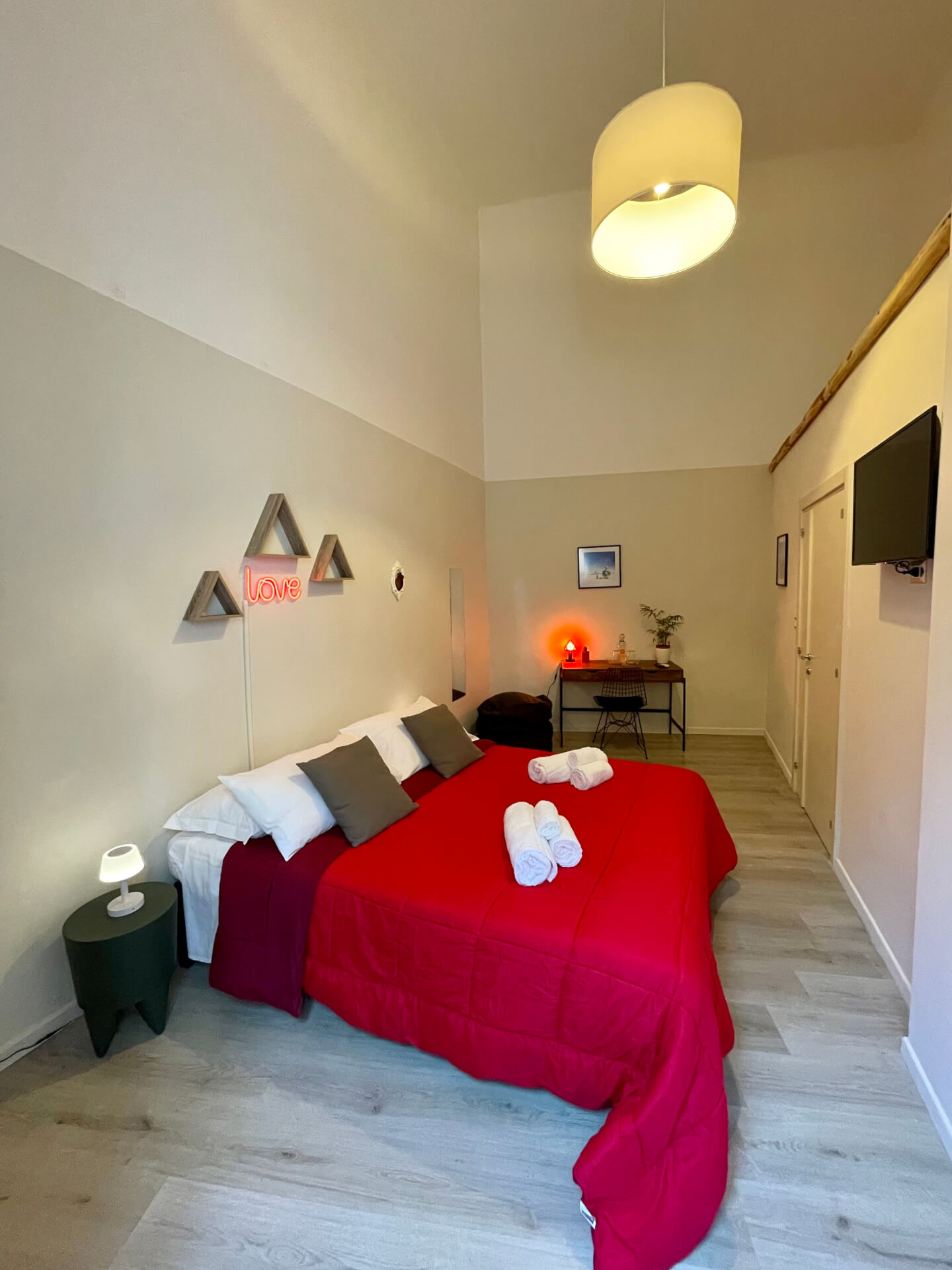 B&B di design appena ristrutturato, in un palazzo storico nel cuore del centro storico di Lecce, a pochi passi dalla maestosa chiesa di S.Matteo e da piazza Sant’ Oronzo. La camera matrimoniale è arredata con gusto, dotata di bagno privato e di un terrazzino.Il b&b ha un giardino interno da cui è possibile ammirare la torre del duomo, preziosamente incastonata sullo sfondo di un panorama suggestivo. All’interno della camera ogni comfort: letto matrimoniale, aria condizionata caldo/freddo, Wifi, Tv.